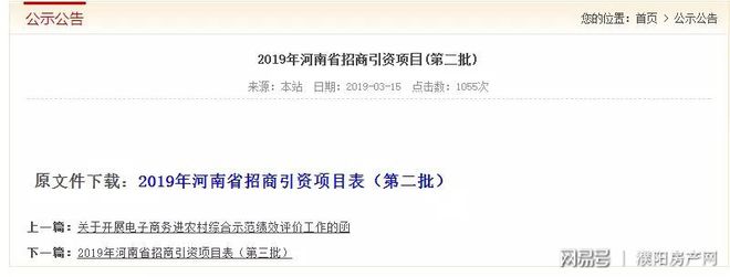 2019年河南省招商引资项目第二批包括特色小镇项目、城市主题公园建设、新能源汽车项目等1000个项目,总投资超1.34万亿元。其中,濮阳市有:濮阳县梨园乡长寿文化农业生态观光园项目、东田花海农业园区项目、羽绒国际交易中心项目、庆祖镇休闲食品小镇项目、濮东高铁特色小镇项目、电影小镇项目等46个项目,总投资432.3亿元。